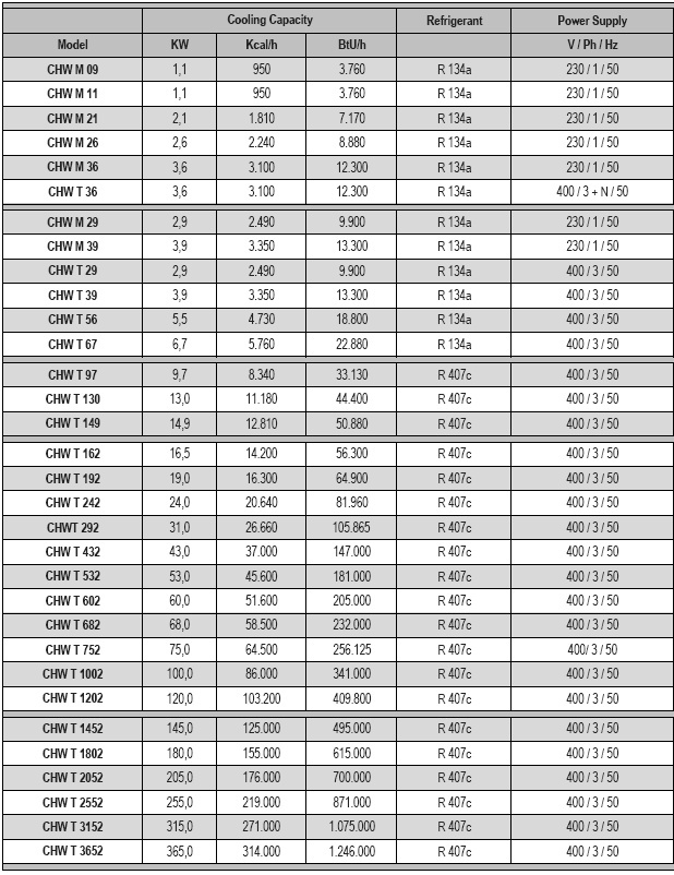 Моноблочные холодильные установки для внутреннего и наружного применения, могут поставляться с насосом и баком, спроектированные для воды и раствора этиленгликоля.